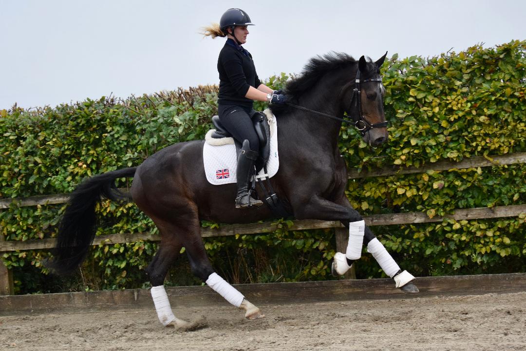 Incredible 16.3h, 5 year old mare by Iconic B x Furst Heinrich. This mare is one in a million! She has a flawless temperament, wants to learn and please and finds everything easy. She is working at Elementary and displays everything you look for in a future GP horse. She has three outstanding paces, with a quick hind leg action, enormous walk for a 10! And is naturally loose and supple in her body. She has competed very successfully at Novice, with scores in excess of 77%. The judges adore her and it’s not hard to see why! Not only is she beautiful but she has the kindest, sweetest demeanour and is not at all sharp or spooky. She has a big engine and lots of go. She is simply a mare you can’t help but fall in love with and you will never get off without a smile on your face. She is Elite Ster graded with 80/80. She has a clean vetting and X-rays from August 2023, when she was imported from Holland. This truly spectacular mare has a huge future ahead of her and will no doubt be a top FEI horse! She is vice-free, not mareish, good to hack, perfect to travel.